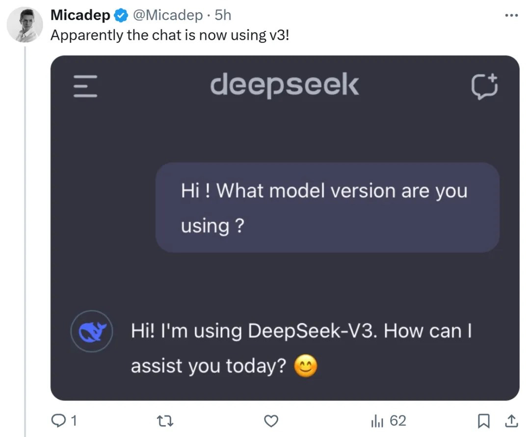 Early adopters have already begun testing the model through DeepSeek's API, with the interface clearly indicating the transition to V3. The chat interface has been updated to reflect these changes, providing users with direct access to the improved capabilities.