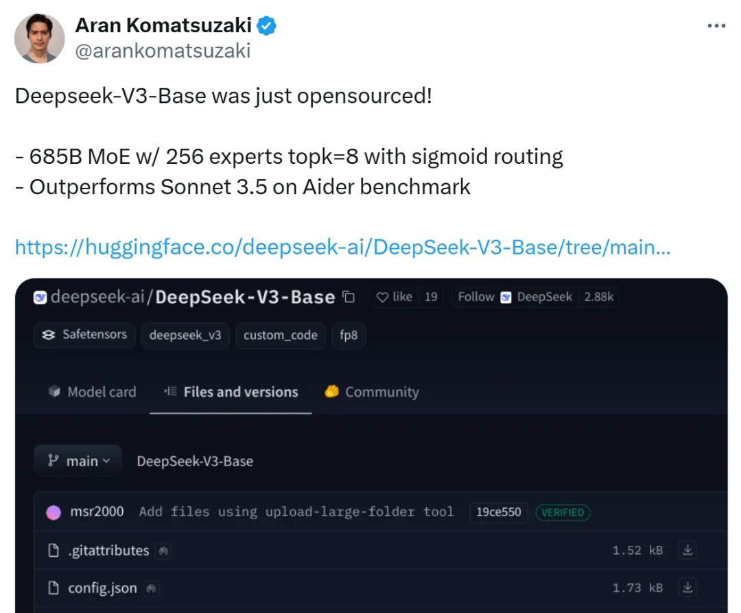 For developers and researchers interested in exploring DeepSeek-V3-Base, the model is available for download on HuggingFace, opening new possibilities for AI development and implementation.
